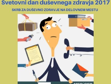 Letošnji svetovni dan duševnega zdravja, ki ga obeležujemo 10. oktobra , poteka pod geslom »Skrb za duševno zdravje na delovnem mestu« in je posvečen ohranjanju in krepitvi duševnega zdravja na delovnem mestu.
